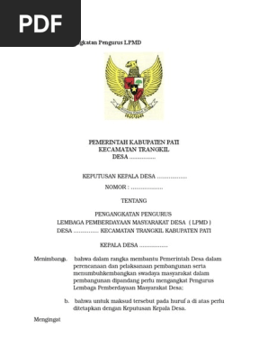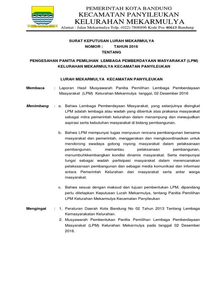 Format Baru Sk Pengangkatan Pengurus Lpmd from imgv2-1-f.scribdassets.com Newer post older post home. Contoh format surat keputusan sk. Sk lpm lkj des 2014.docx. Ambil disini contoh sk lpm, format ms word. Dengan rahmat tuhan yang maha esa. Contoh sk penetapan rekening kas desa; Contoh sk lpm desa lembaga pemberdaya masyarakat. Format terbaru sk revisi pengangkatan pengurus lpm desa/kelurahan terkadang komposisi pengurusan suatu lembaga mengalami perubahan baik itu penambahan atau pengurangan anggota.